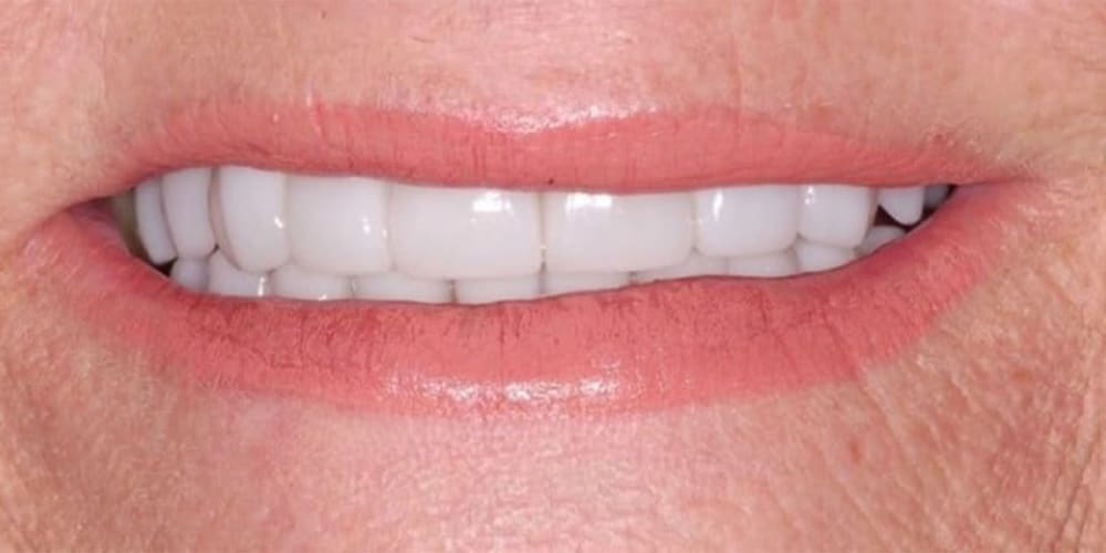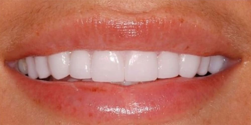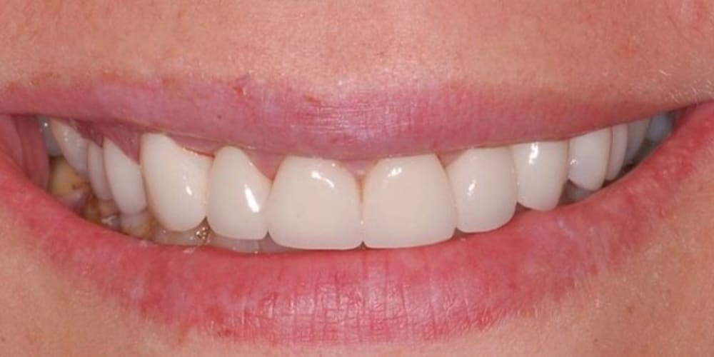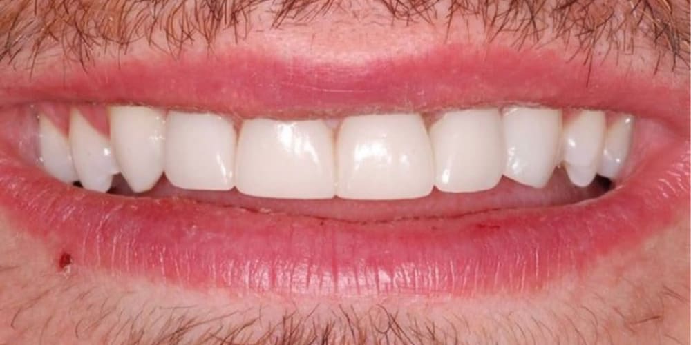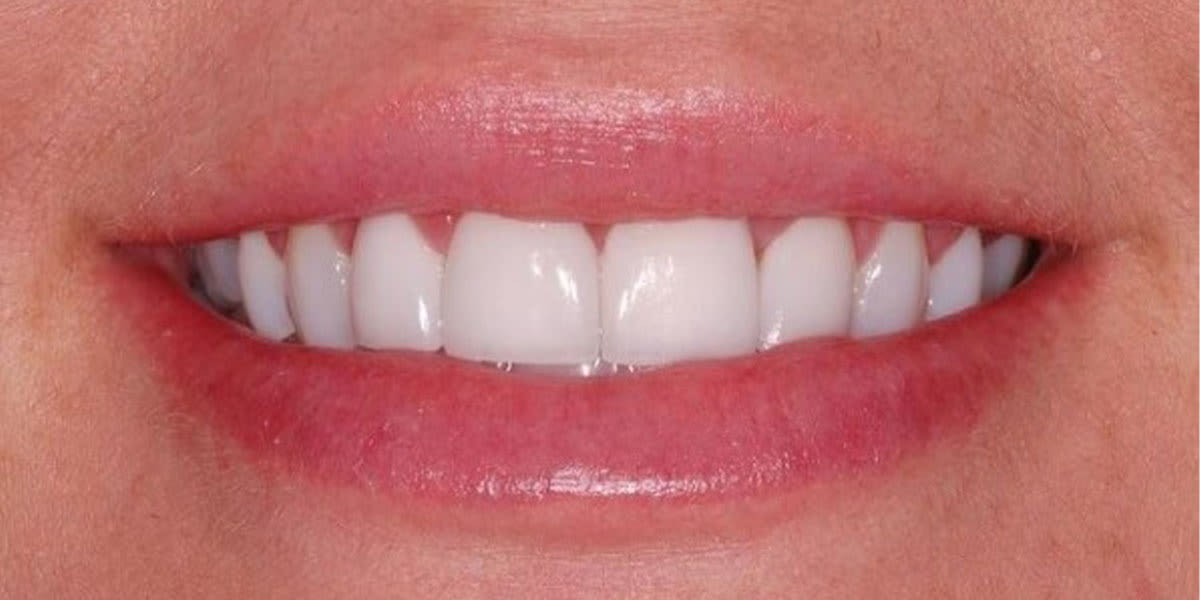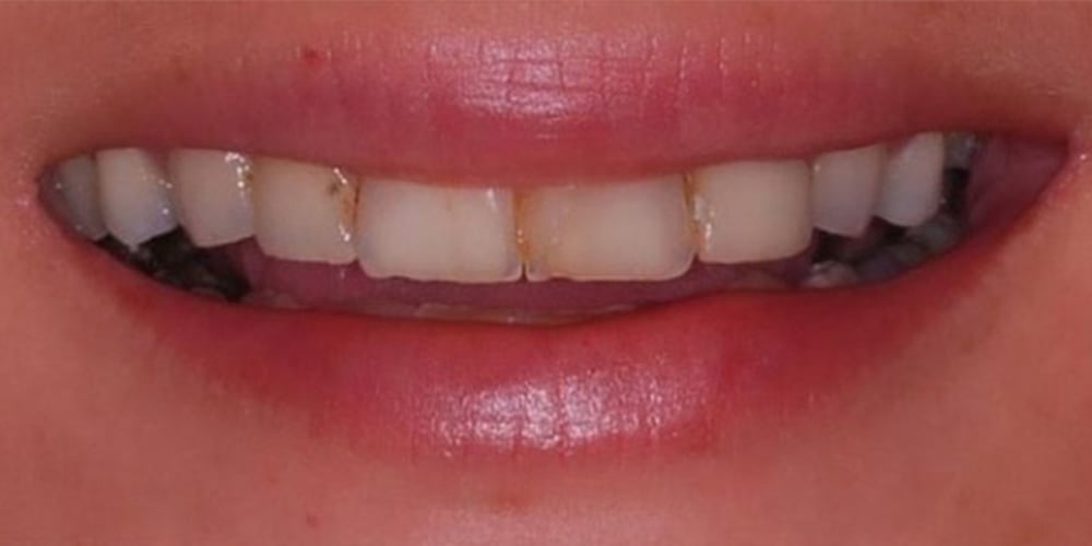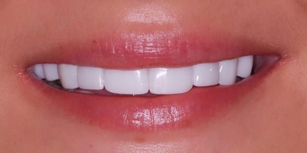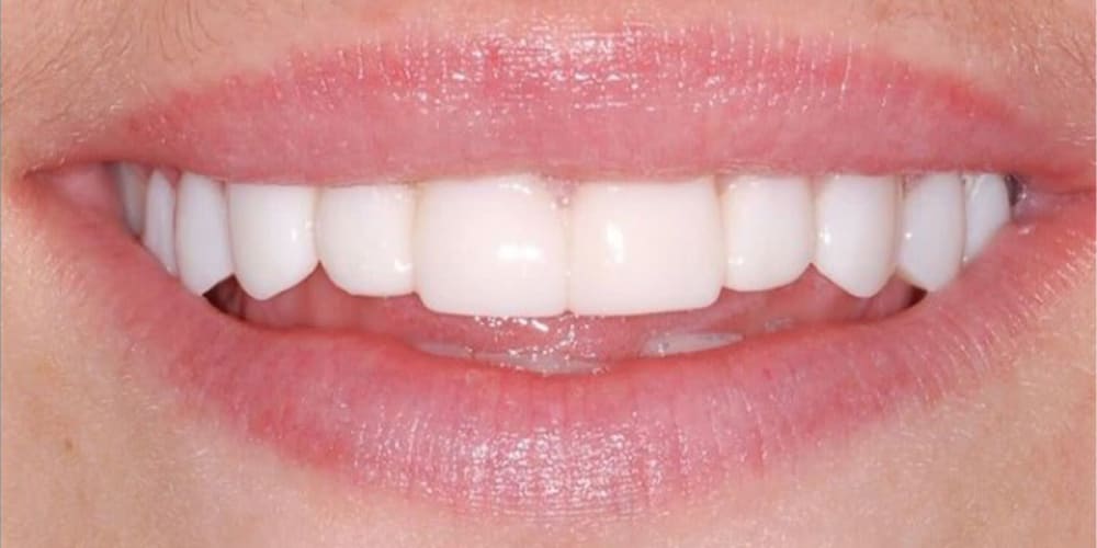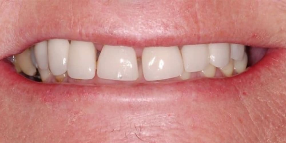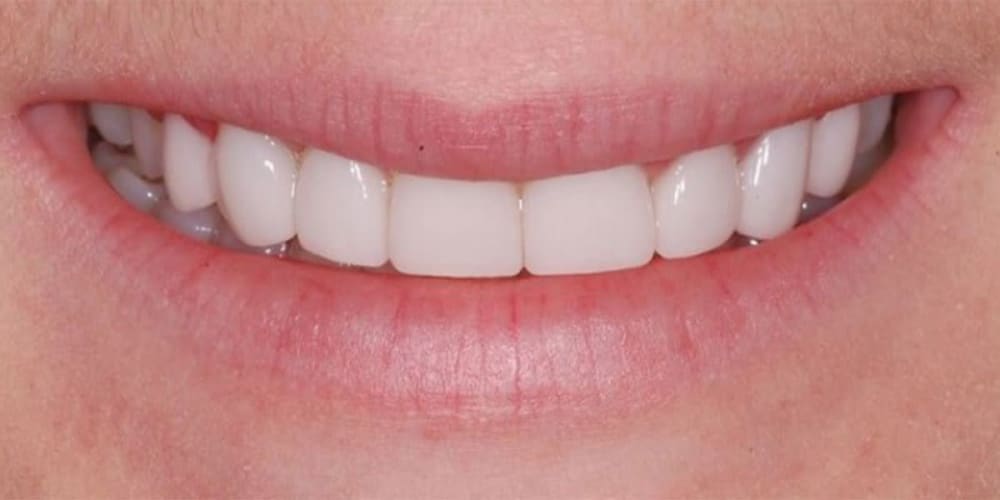 Réhabilitation complète des dents avec couronnes et facettes de porcelaine.