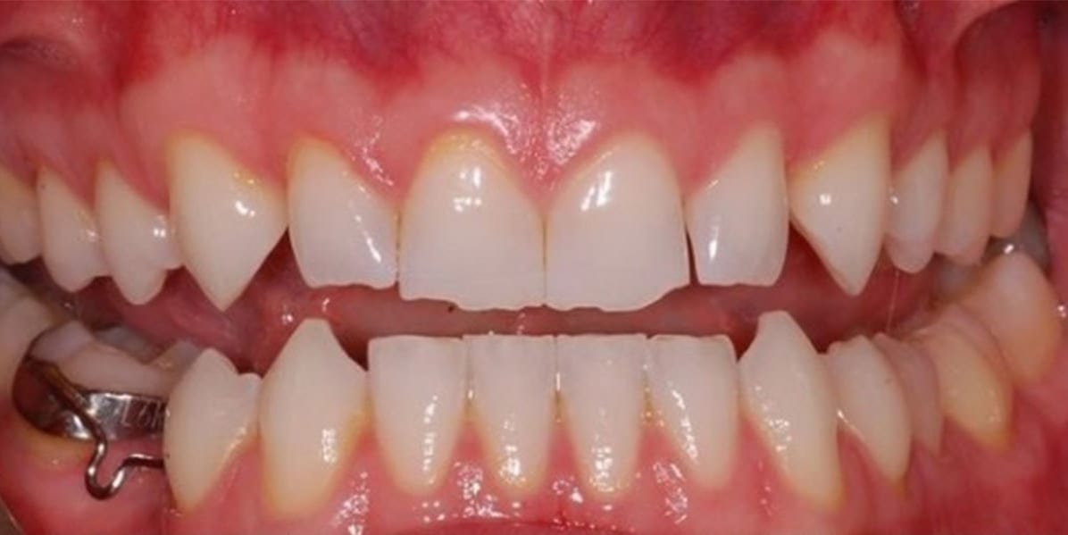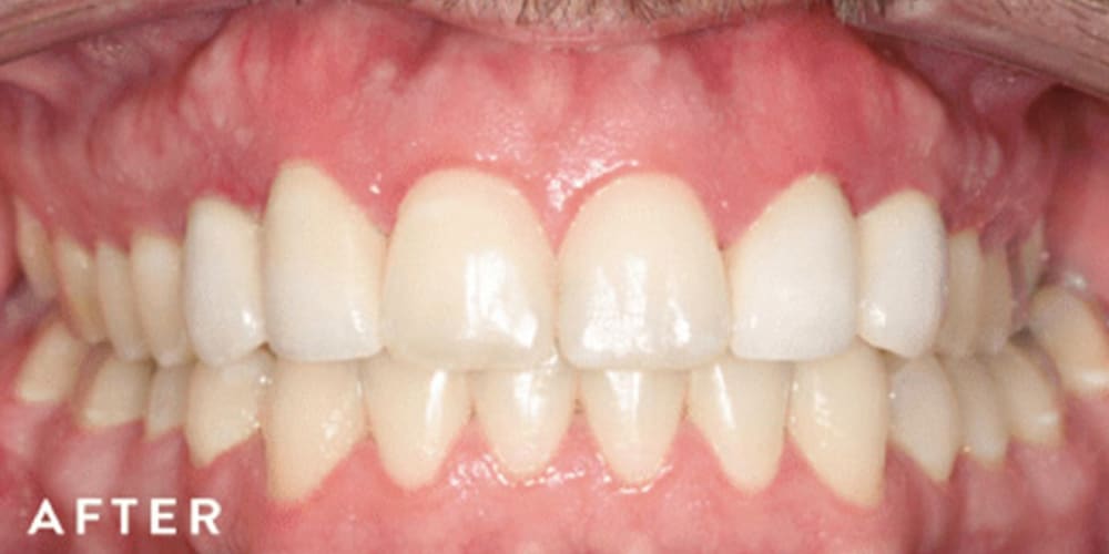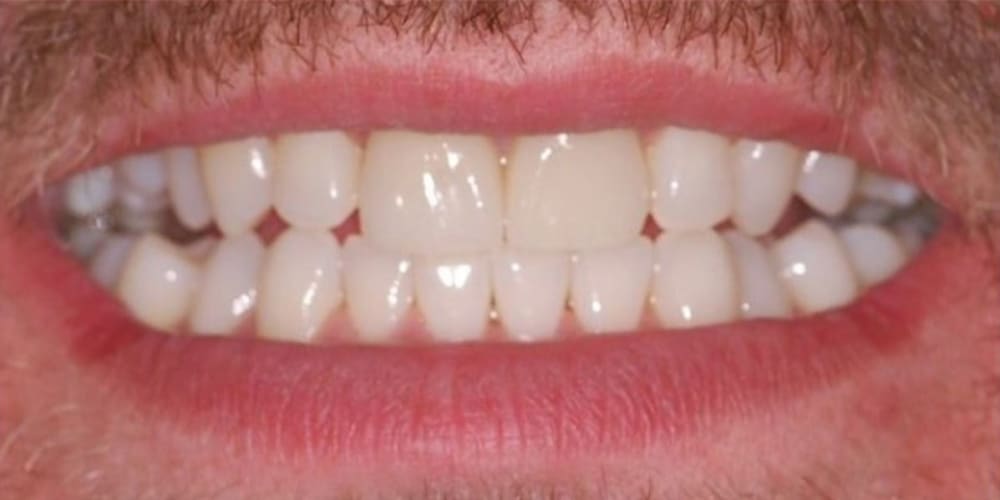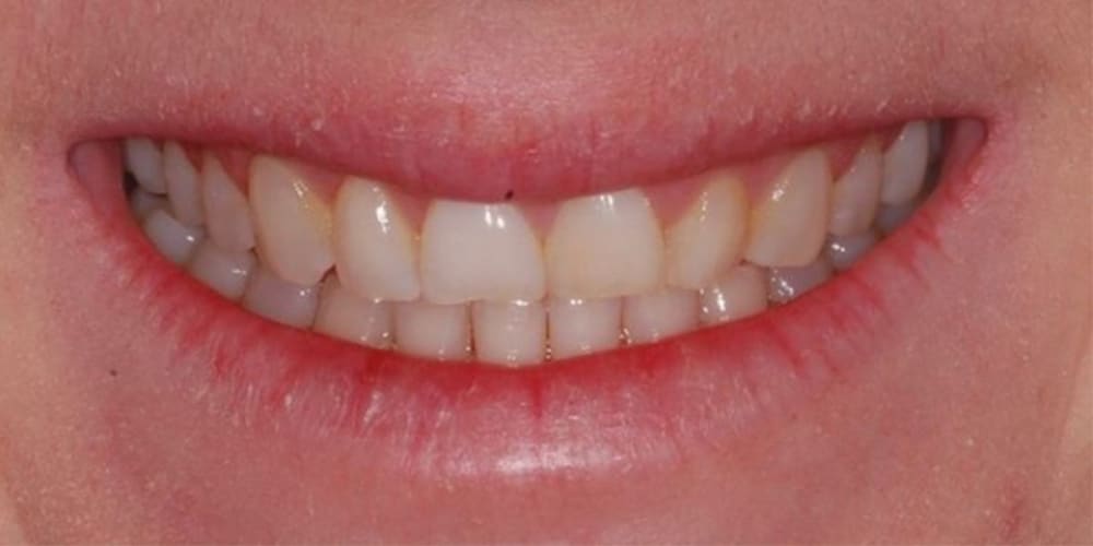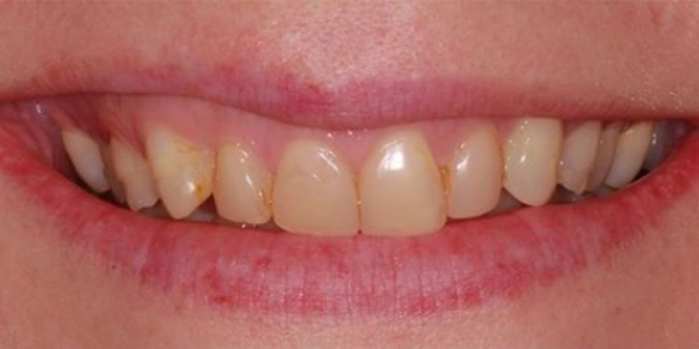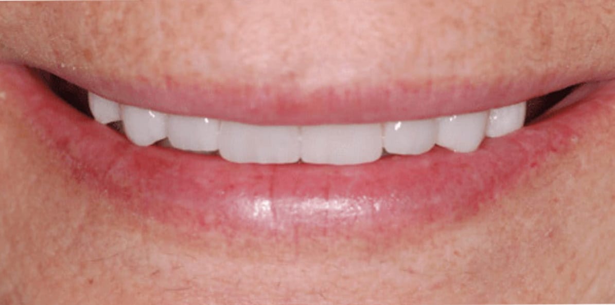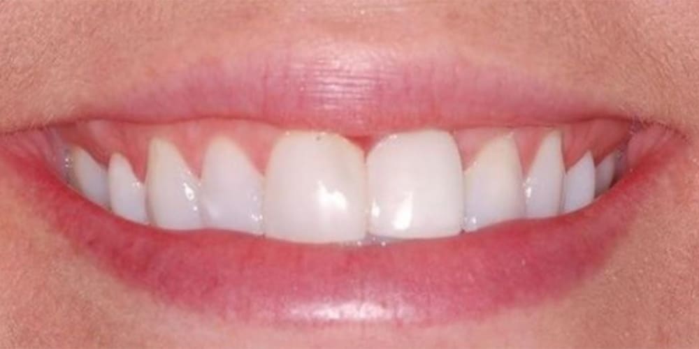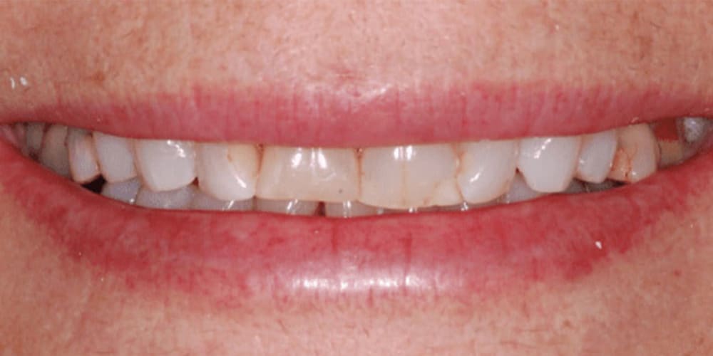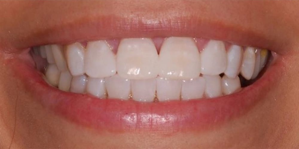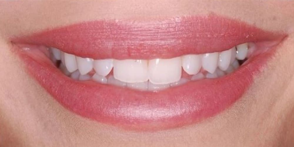 Réhabilitation complète des dents avec couronnes et facettes de porcelaine.