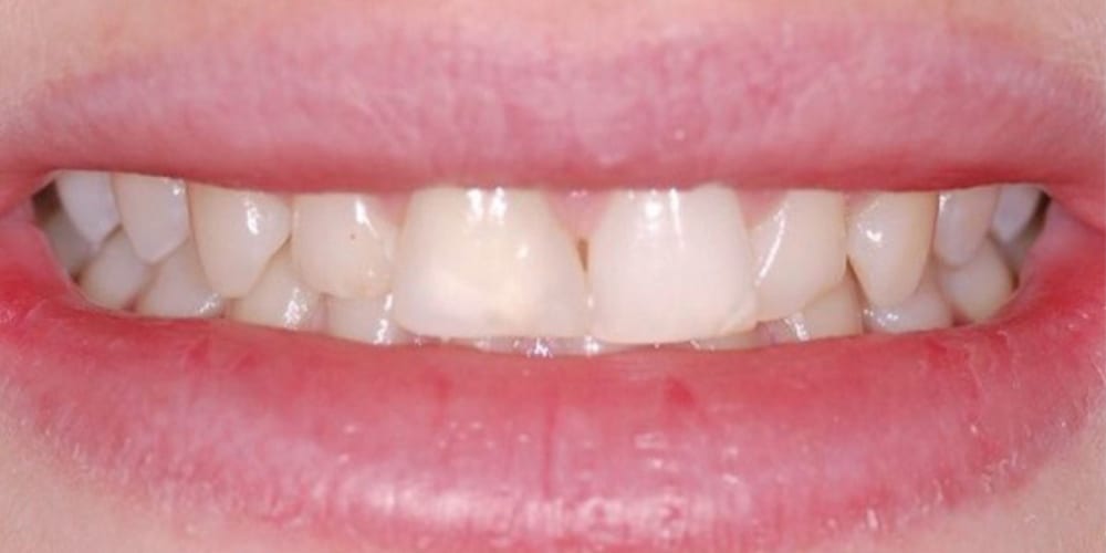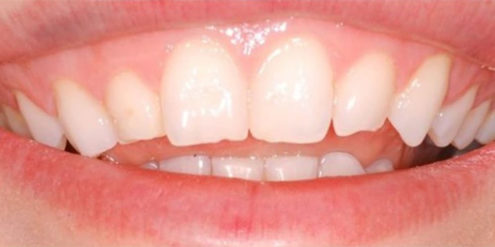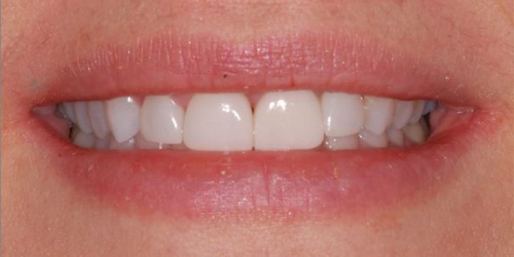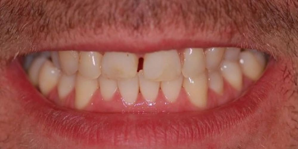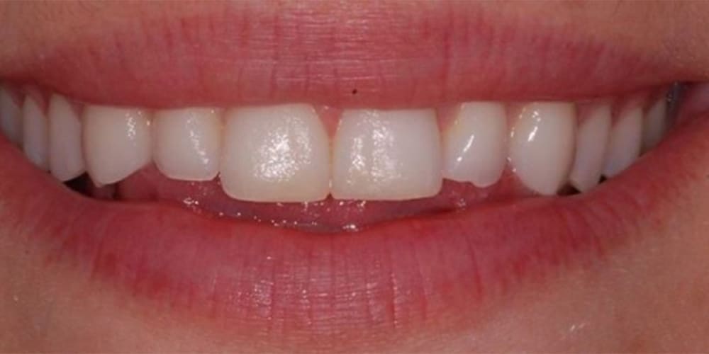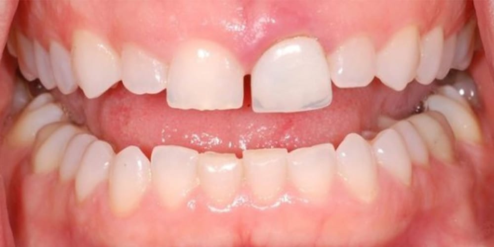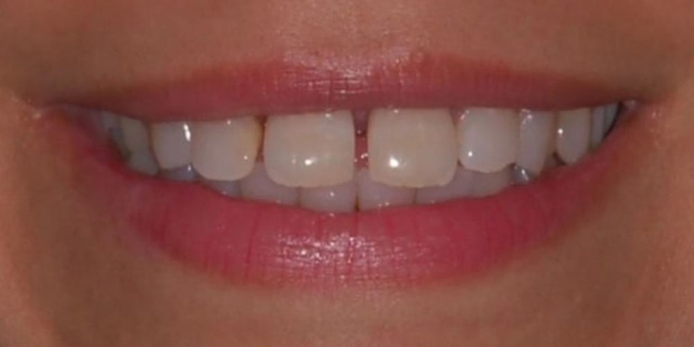 Fermeture de diasteme avec deux couronnes en porcelaine et blanchiment des dents.
