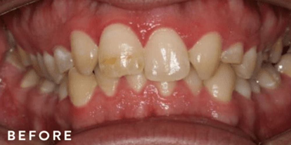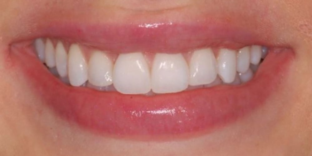 Un implant, une correction de gencive, 3 couronnes et 3 facettes.